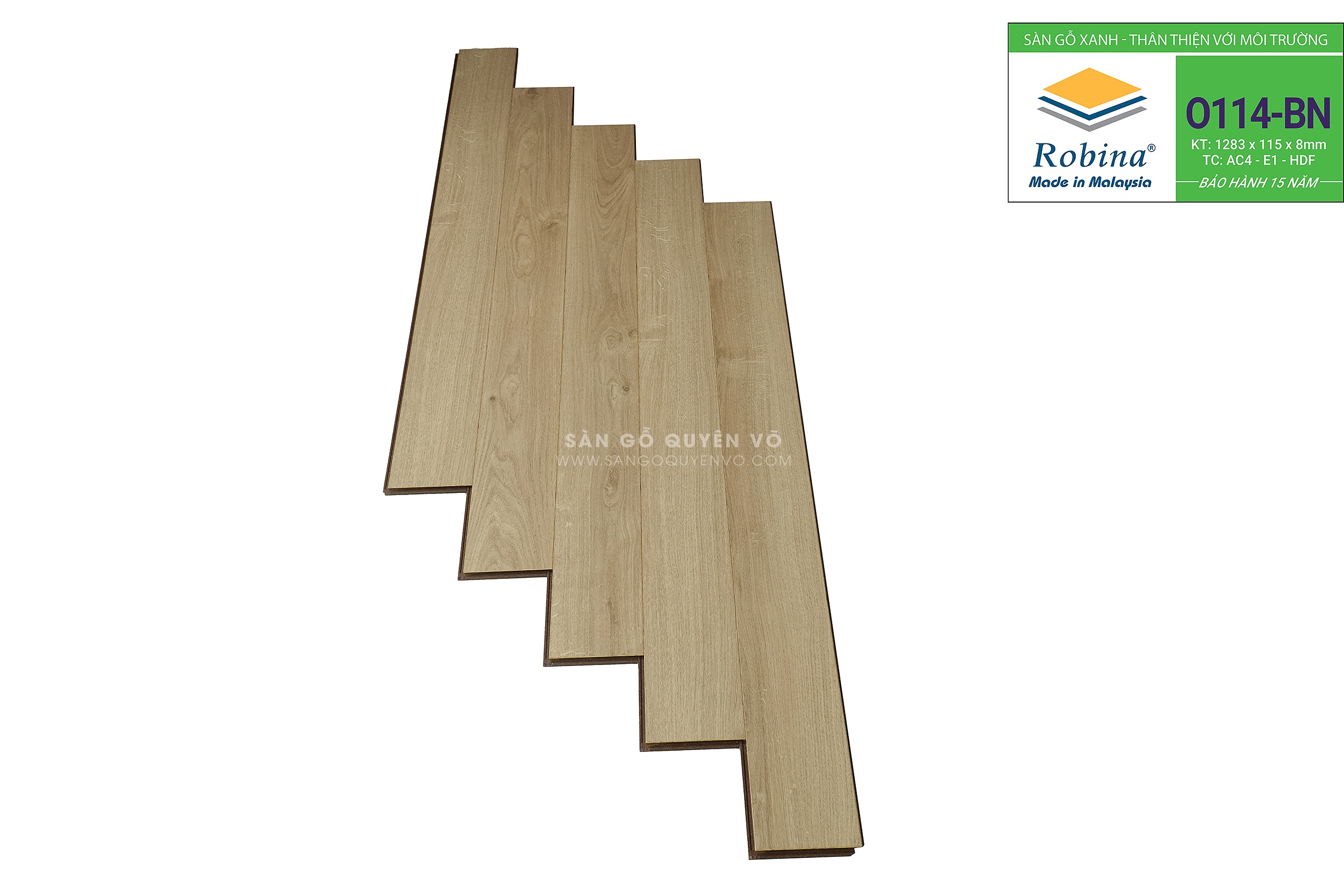 Sàn gỗ Robina 8mm bản nhỏ 1283 x115x 8mm- 0114BN